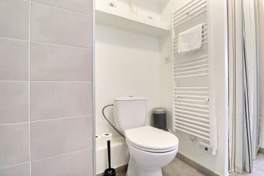 Discover this stunning 31m² studio on the 2nd floor with an elevator, renovated in a contemporary style. Spacious and bright, it offers a view of a peaceful garden. The living area, with a sofa, TV, and comfortable bed, ensures restful nights. The open kitchen is fully equipped for a pleasant stay. A true haven of tranquility in the city.